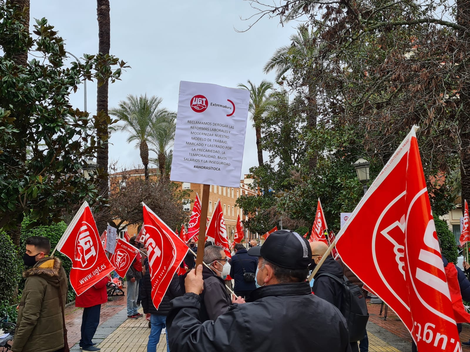 CCOO y UGT se concentran en Badajoz porque #AhoraSíToca subir el SMI y derogar la Reforma Laboral y la de pensiones